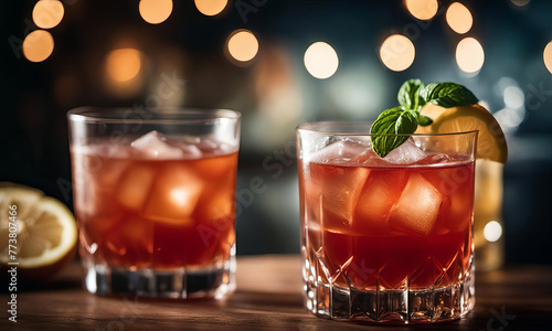 two glasses of old fashioned cocktails