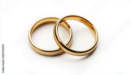 two golden wedding rings isolated on white background