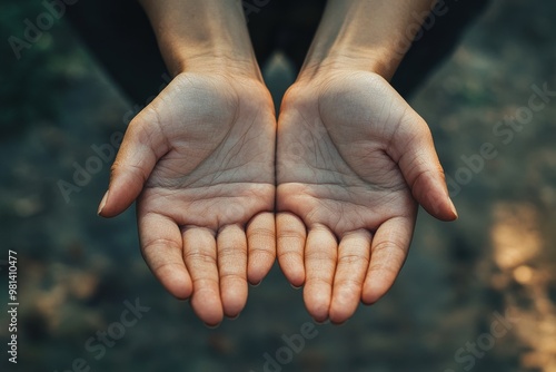 Two hands in a praying position, with one hand on top of the other, generative ai image
