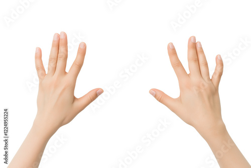 Two hands touching something isolated on transparent white background