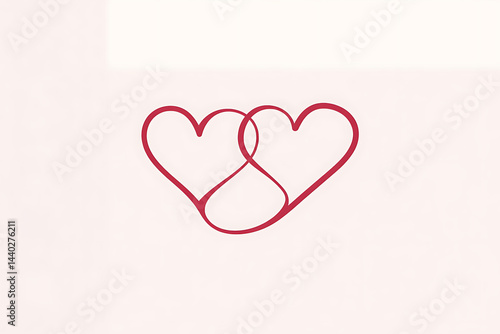 Two intertwined red hearts symbolizing connection love and infinity gracefully adorning a white background.