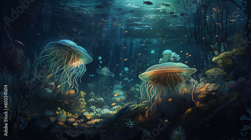 Two jellyfishs in the water Generative Ai