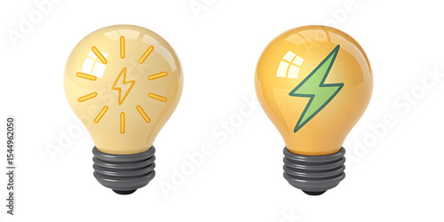 Two light bulbs with lightning bolt icons isolated on transparent background
