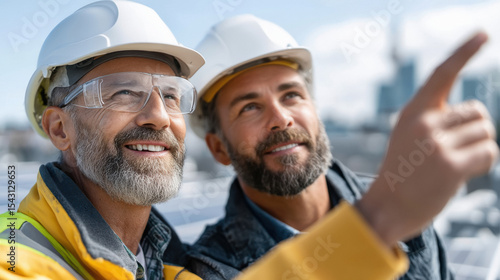 two male engineer pointing finger and talking