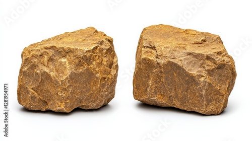 Two Natural Brown Rocks Isolated on White Background Ideal for Design