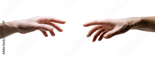 Two outstretched hands, reaching towards each other against a black background