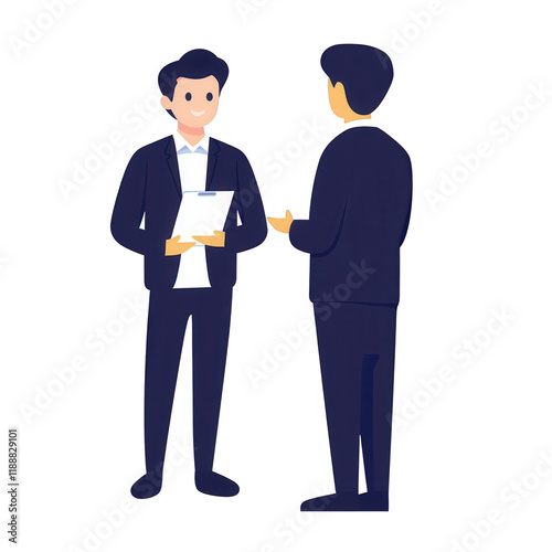 Two professionals engaged in a discussion and exchanging important documents., isolated on a transparent background.