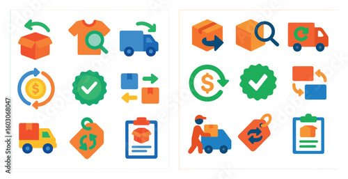 Two sets of icons for a delivery service. One set has a green check mark and the other has a red check mark