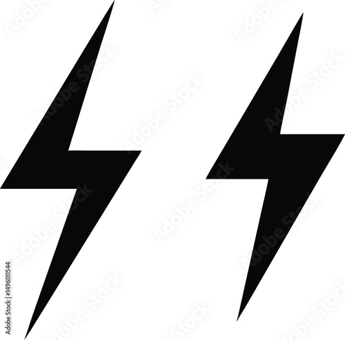 Two Simple Black Lightning Bolt Icons on White
