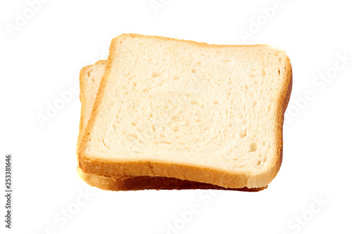 Two slices of toast bread on white bacground