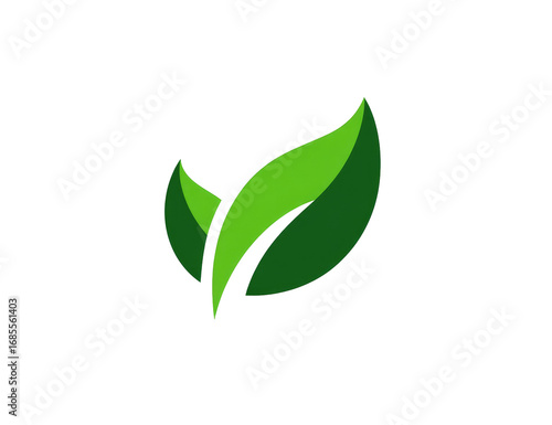 Two stylized, bright green leaves on a black background. The leaves are simple, smooth shapes with slightly defined edges. They overlap in a V shape