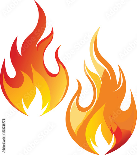 Two Stylized Flames with Orange and Yellow Gradient on a White Background Representing Heat Energy and Passion in a Modern Design