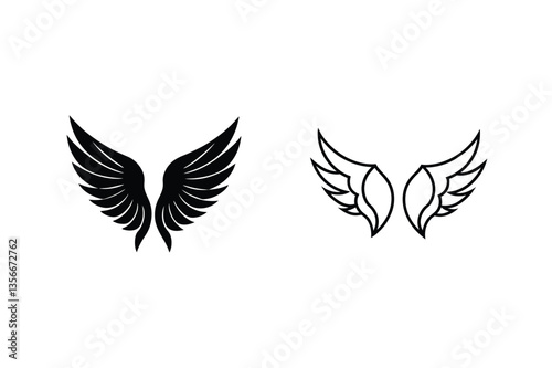Two stylized wing designs black, line art, graphic, symbol, logo, freedom, flight, avian, emblem, ice
