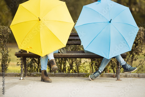 Two umbrellas in park in autumn