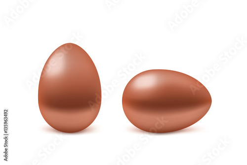 Two vector realistic bronze eggs. Isolated easter eggs on white background. Holiday decoration