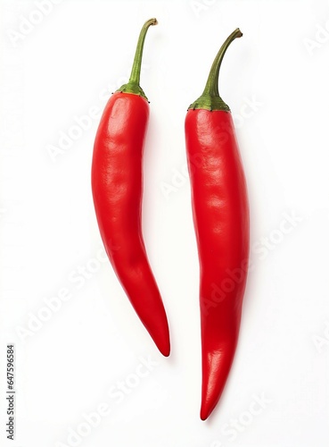 Two vibrant red peppers on a clean white background