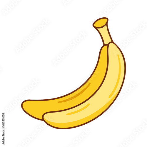 Two yellow bananas with brown outlines on a white background artwork