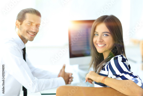 two young employee sitting behind a Desk