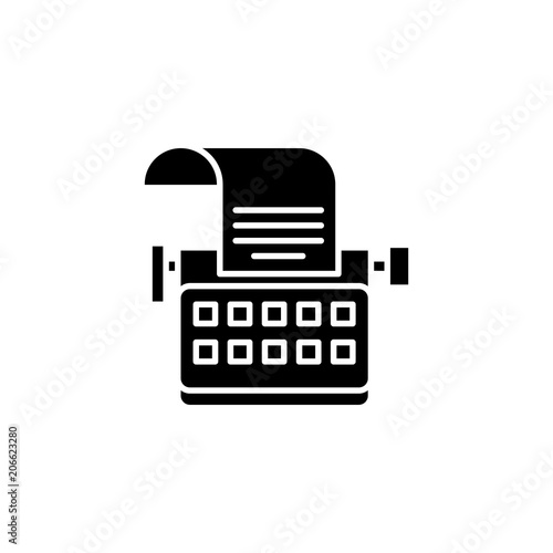 Typewriter black icon concept. Typewriter flat vector symbol, sign, illustration.