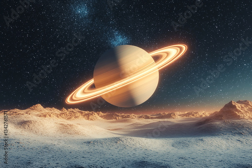 UFO in the desert and space with stars, moon, and a cosmic landscape at night ai generated