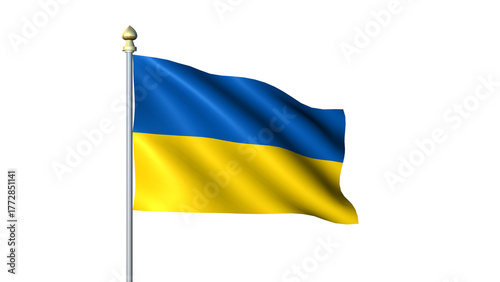 Ukraine national Waving flag with flagpole on transparent background