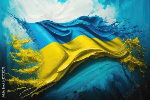 Ukrainian flag in acryl fluid art style. AI generation