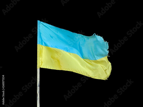 ukrainian flag, waving on blowing wind, isolated on black