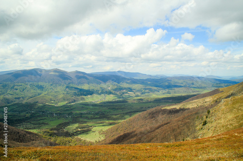 Ukrainian picturesque Carpathians. Mountain trip. Traveling Fields. Landscapes from the top. Trees. Autumn