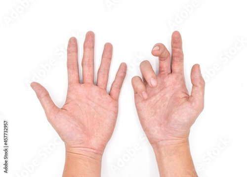 Ulnar claw hand of Asian young man. also known as 'spinster's claw.
