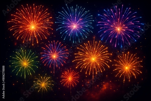 Ultra-HD Vibrant Fireworks Explosion in Midnight Sky – Hyper-Realistic Neon Bursts & Sparkling Particle Effects