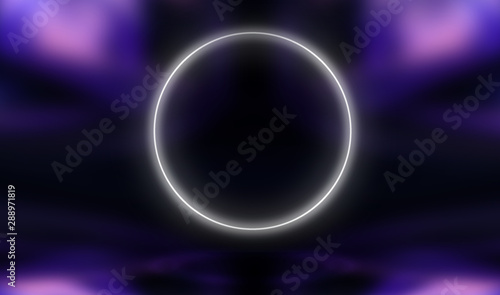 Ultraviolet background glowing circle in the center. Abstract modern neon background.