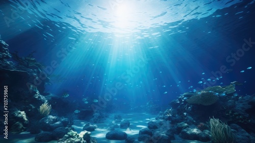 Underwater Ocean - Blue Abyss With Sunlight