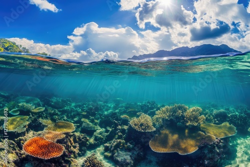 Underwater View of Coral Reef and Fish