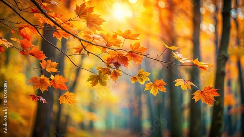 Unfocused forest background with autumn leaves on a branch , autumn, leaves, branch, fall, foliage, nature, forest, blurred