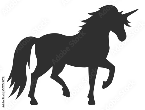 Unicorn silhouete. Black fairytale animal. Magic creature