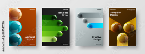 Unique 3D spheres poster template composition. Minimalistic front page A4 vector design illustration set.