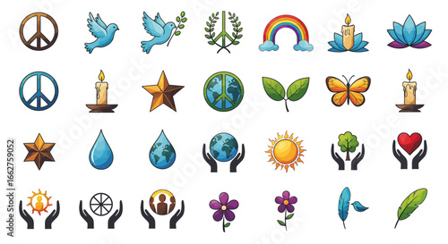 Unique International Peace Day Vector Icons Set Flat Outline Silhouette Geometric and Cartoon Styles