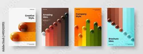 Unique realistic spheres postcard template collection. Fresh cover A4 design vector illustration bundle.