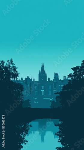 University campus silhouette on turquoise background version 61