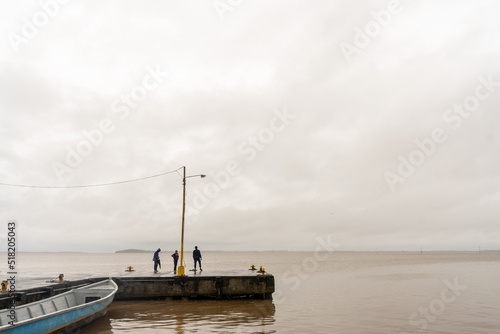 Unrecognizable people walking on a rainy day at the pier of Bluefields, Caribbean Coast of Nicaragua