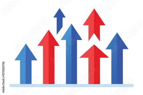 Upward Arrows Chart in Blue and Red Colors on White Background