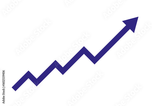 Upward trend blue arrow icon on a transparent background.