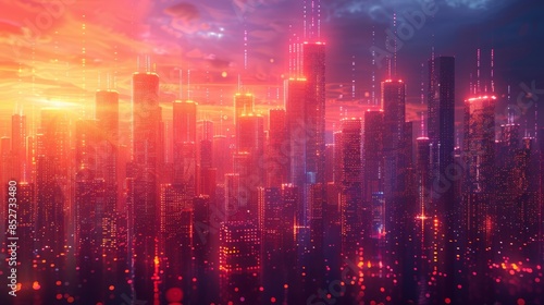 Urban Architecture High Towers Concept of the Future City. Virtual Reality Abstract Digital Buildings. Modern Technology Vector Illustration