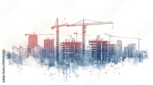 Urban Construction with Cranes and High-rise Buildings. Construction site. AI generated image
