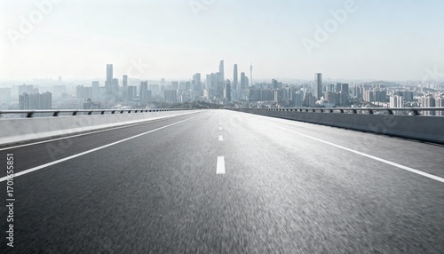 Urban Expressway Leading to Cityscape: Modern Road Infrastructure and Downtown Skyline Perspective, Emphasizing Transportation and Urban Development