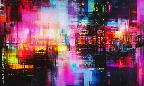 Urban Pulse - Vibrant Motion Blur with Colorful Glitch Effects Capturing City Life's Energy and Movement