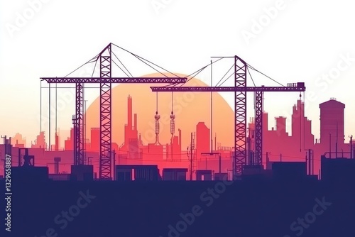 Urban Skyline Construction at Sunset with Cranes and Buildings