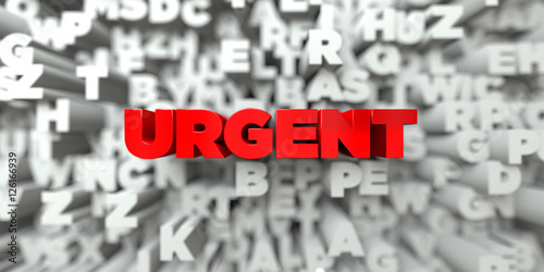 URGENT - Red text on typography background - 3D rendered royalty free stock image. This image can be used for an online website banner ad or a print postcard.