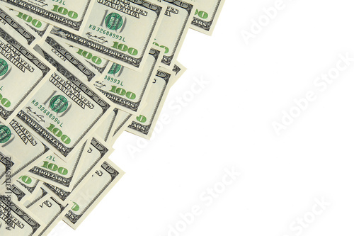 US dollar money cash currency background. Many American Dollars 100 banknote border in the corner . Pile of One hundred US dollar banknotes isolated on white background