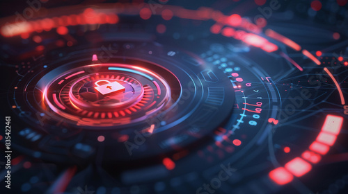 User inputting login credentials cyber security concept with digital lock and network connections data protection and secure access on a dark blue background